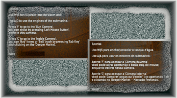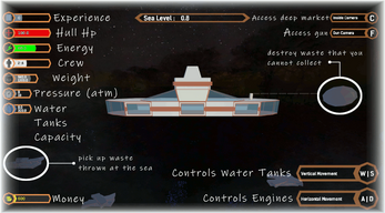 - Money : There are two ways of making money. First, by leveling up - you will gain a tiny amount of xp over time spent playing, but you could destroy the other "non-colectable" trash with your camera-gun (key F - front view of sub).